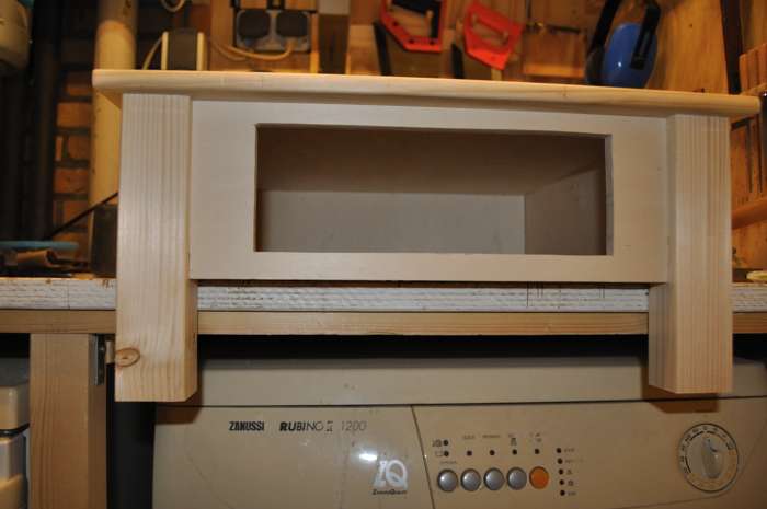 Nu de buitenkant gelijmd is, kan ik beginnen met het plaatsten van de planken voor de ladegeleiders en het maken van de lade.